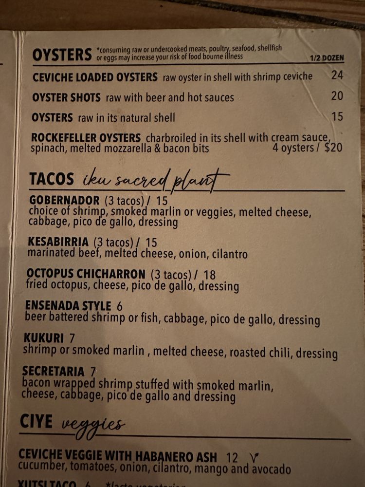 Smoked marlin, melted cheese, cabbage, pico de gallo and dressing