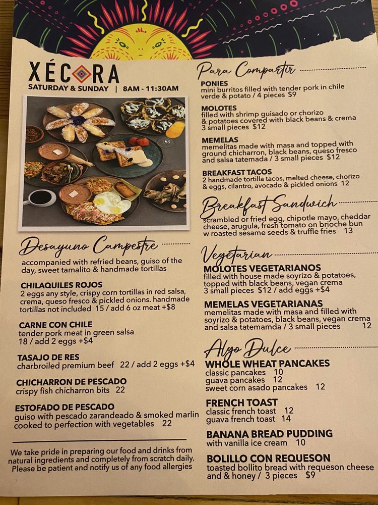 Xecora Gastronomia Urbana is a vibrant cocktail bar and Mexican restaurant located in El Monte, CA. Known for its authentic and seasonal ingredients, the menu offers a variety of dishes like Aguachiles, Caldos, and refreshing Aguas Frescas. Customers rave about the ceviche options and the Carne Asada plate, praising the unique flavors and fresh ingredients. The ambiance is described as colorful and modern with a touch of Mexico, creating a romantic and welcoming atmosphere. The attentive service from staff members like Brenda, Adrian, and Angel adds to the overall enjoyable dining experience. With happy hour specials, delicious drinks like Horchata and Micheladas, and a diverse menu catering to different tastes, Xecora Gastronomia Urbana is a must-visit destination for Mexican gastronomy enthusiasts. Experience the flavors of Mexico and enjoy a memorable dining experience at Xecora.